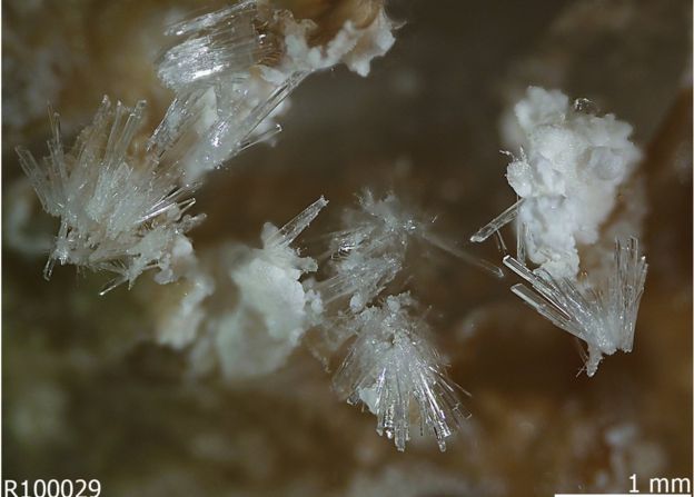Hazenite’ler, sadece mikrobiyal dışkılardan oluşmuş kristallerdir. Bu nadir mineral sadece tek bi yerde bulunabilir, Kaliforniya Mono Gölü. Bu gölde fosfor düzeyi oldukça yüksektir, ve sudaki mikroplar hayatta kalabilmek için kendi hücrelerinde bunu salgılamak zorundalar. Yani bu kristal bir hayatta kalma mücadelesi sonucunda doğar.