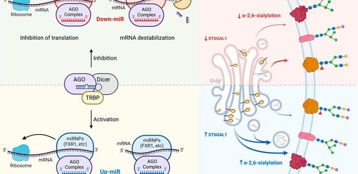 Fotoğraf : Özet şema. MikroRNA’ların kanser gelişiminde rol oynayabileceği ve tümör hücreleri gibi bölünen hücrelerde protein ifadesini direkt olarak baskıladığı düşünülmektedir. Ancak ACS Central Science dergisinde yayımlanan yeni araştırma, bu küçük moleküllerin bazılarının, bölünen bir insan hücresinde ve kanser hücrelerinde belirli bir genin ifadesini artırabildiklerini de göstermiştir. Yalnızca birkaç nükleotit...