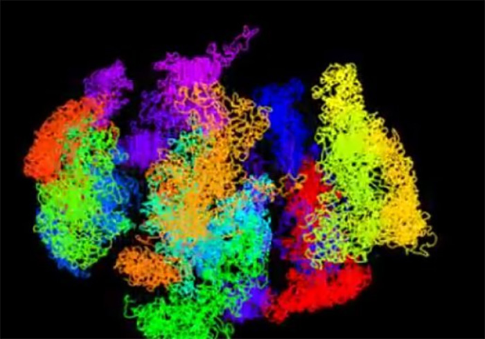 Kromozom genlerinin aktif olduğu bölgeleri mavi renklidir ve nükleer tabakayla (çekirdeğin içindeki yoğun bir fibriler ağ) etkileşen bölgeler sarı renklidir. Bu yapı, genomun en aktif genetik bölgeleri içeride olacak ve nükleer tabakayla ilişkisi daha az olan aktif bölgeden ayrılmış olacak şekilde düzenlendiğini gösteriyor. Bu bölgelerin aynı şekilde her hücrede tutarlı bir şekilde ayrılması bu süreçlerin kromozom ve genom katlanmasına neden olabileceğini ve dolayısıyla DNA replikasyonu ve hücre bölünmesi gibi önemli hücresel olayları düzenleyebileceğini ileri sürmektedir.