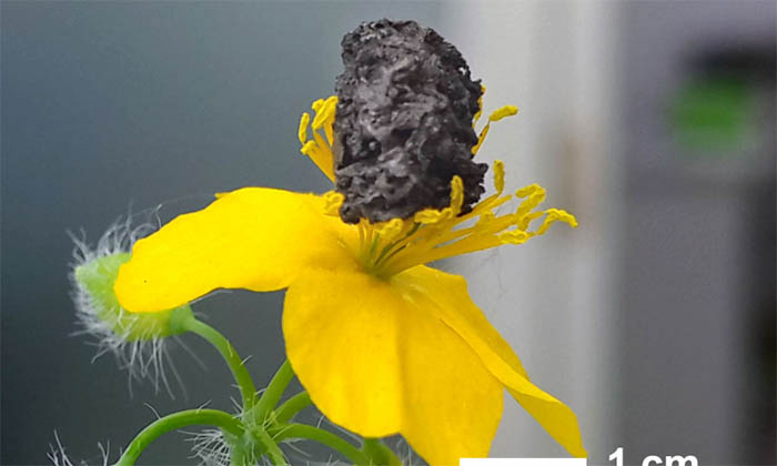 Şekil :  Lityum-oksijen pilleri için nanogözenekli nikel katotları çok hafiftir, burada çiçek stamenleri üzerinde dengeli olarak gösterilmiştir.(Amerikan Chemical Society tarafından)