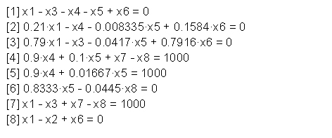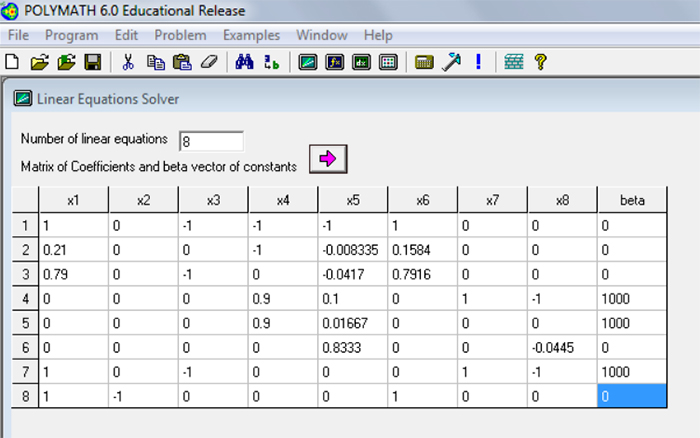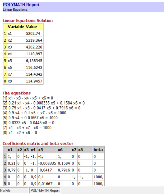 Yazdığımız matrise göre Polymath’in çıkardığı denklikler aşağıdaki gibi olacak.