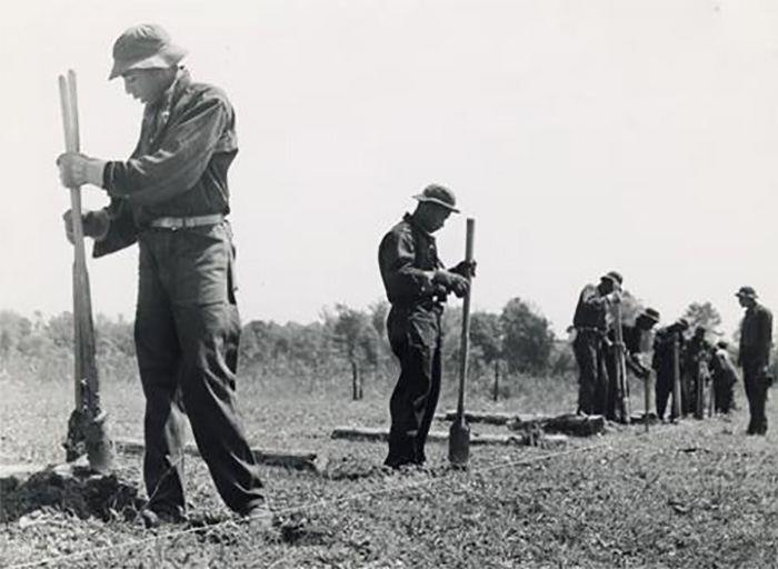 CCC-Sivil Koruma Birliği çit yaparken (Greene County, Georgia) Kaynak: Kongre Kütüphanesi, Baskılar ve Fotoğraflar Bölümü, FSA / OWI Koleksiyonu