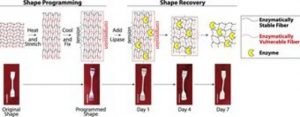 Geçici bir şekil aldıktan sonra, bir enzime maruz bırakılan materyal orijinal konfigürasyonuna geri döner. Çünkü şekli düzelten bileşen PCL indirgenmiştir. Ekip, SMP kompozit yığınlarının hücre kültür şartları altında toksik etkileri olmayan enzim aktivitesine karşılık olarak daralıp, sıklaştığını gösteriyor.