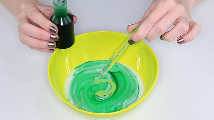 3)İsteğe bağlı olarak birkaç damla gıda boyası ekleyebilirsiniz. Eğer eklerseniz sonrasında iyice karıştırın.